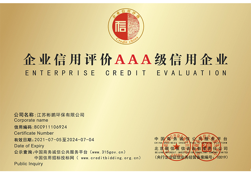 企业信用评价AAA级信用企业